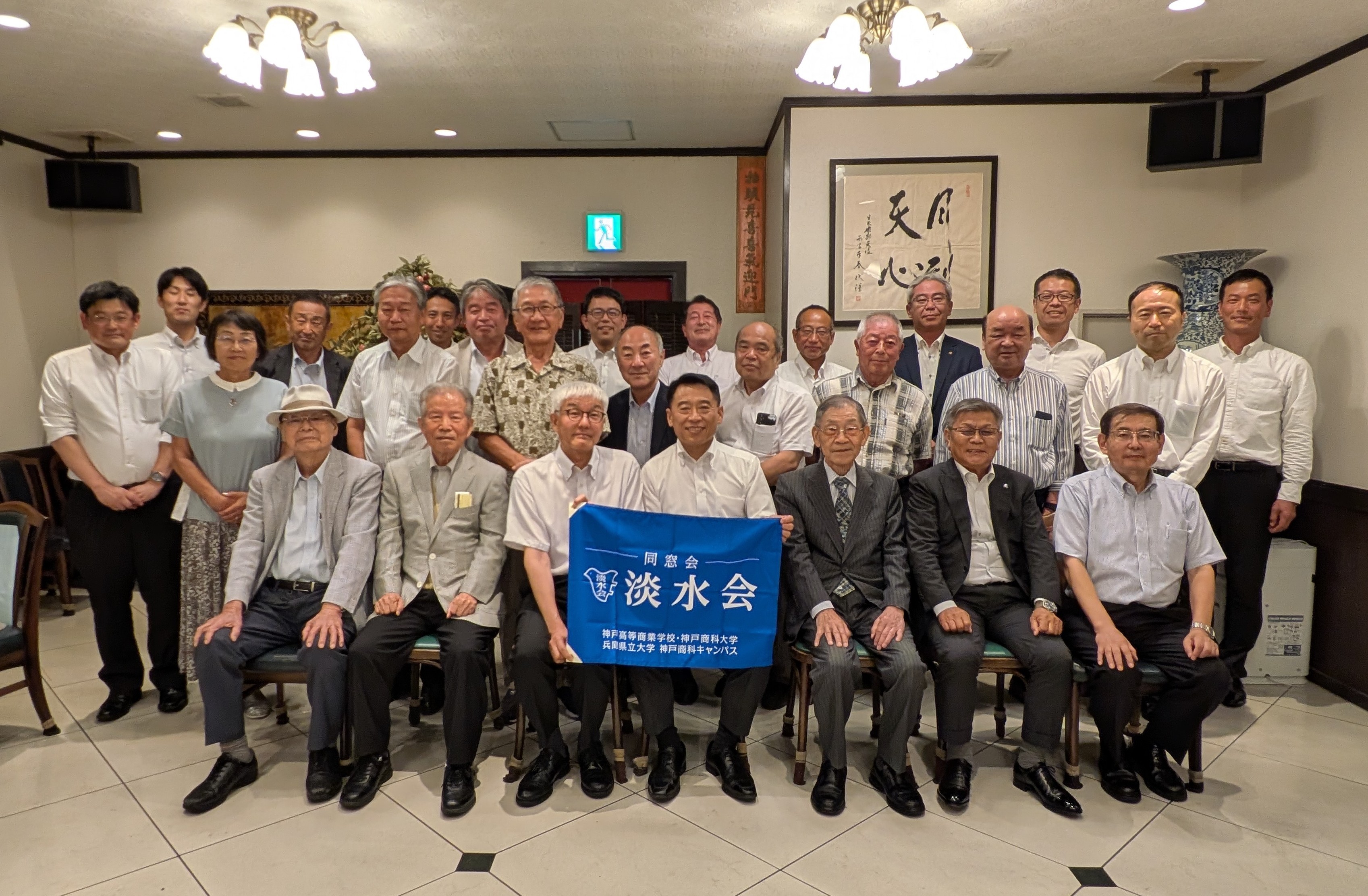歓談半ば、初回あるいは久方ぶりの参加者からの自己紹介がありました。テーブルごとになつかいしい思い出話やお互いの近況や情報交換など大いに盛り上がりました。その後、岡村会長のエールとリードにより、全員での神戸商科大学学歌斉唱が行われました。最後に集合写真を撮影して、喜多村泰三副支部長(G38)の中締めにより散会となりました。