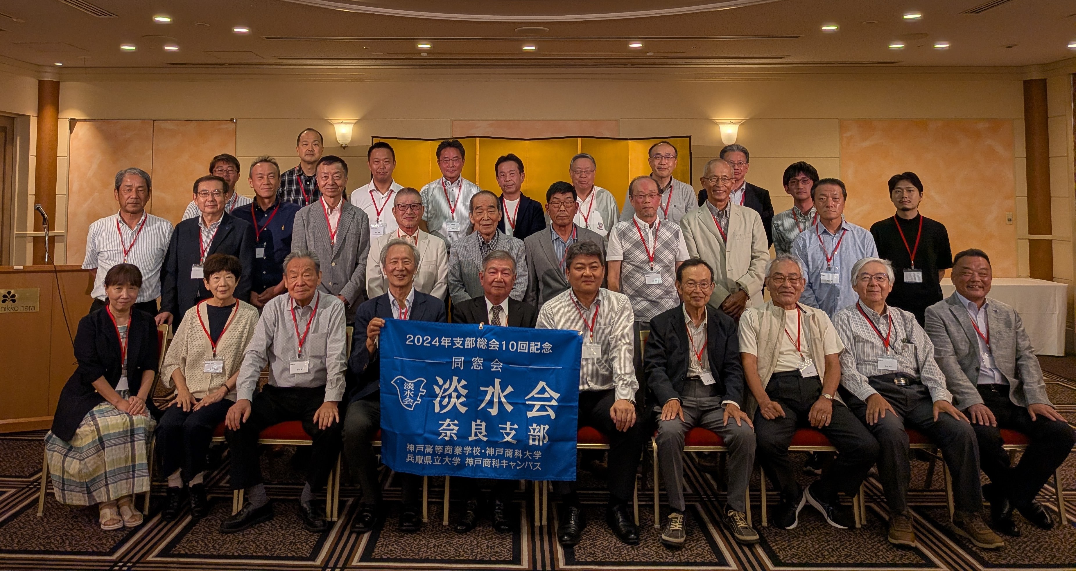 来賓の兵庫県立大学加納副学長からは、神戸商科大学から兵庫県立大学へ移行する際の学部編成の経緯など一連の流れについて興味深いお話がありました。司会の狩野卓也(G28) 副支部長の進行で、令和6年度決算報告が行われ、また一部支部会則の変更案の説明があり、拍手をもって決議されました。その後、清水修氏(G10)の乾杯のご発声で懇親会となりました。宴半ばで本部事務局から大学のトピックスや各支部の活動状況などの報告や、初参加者挨拶などもあり、宴会は大いに盛り上がりました。次回の奈良支部総会は、令和8年9月12日(土)の予定です。