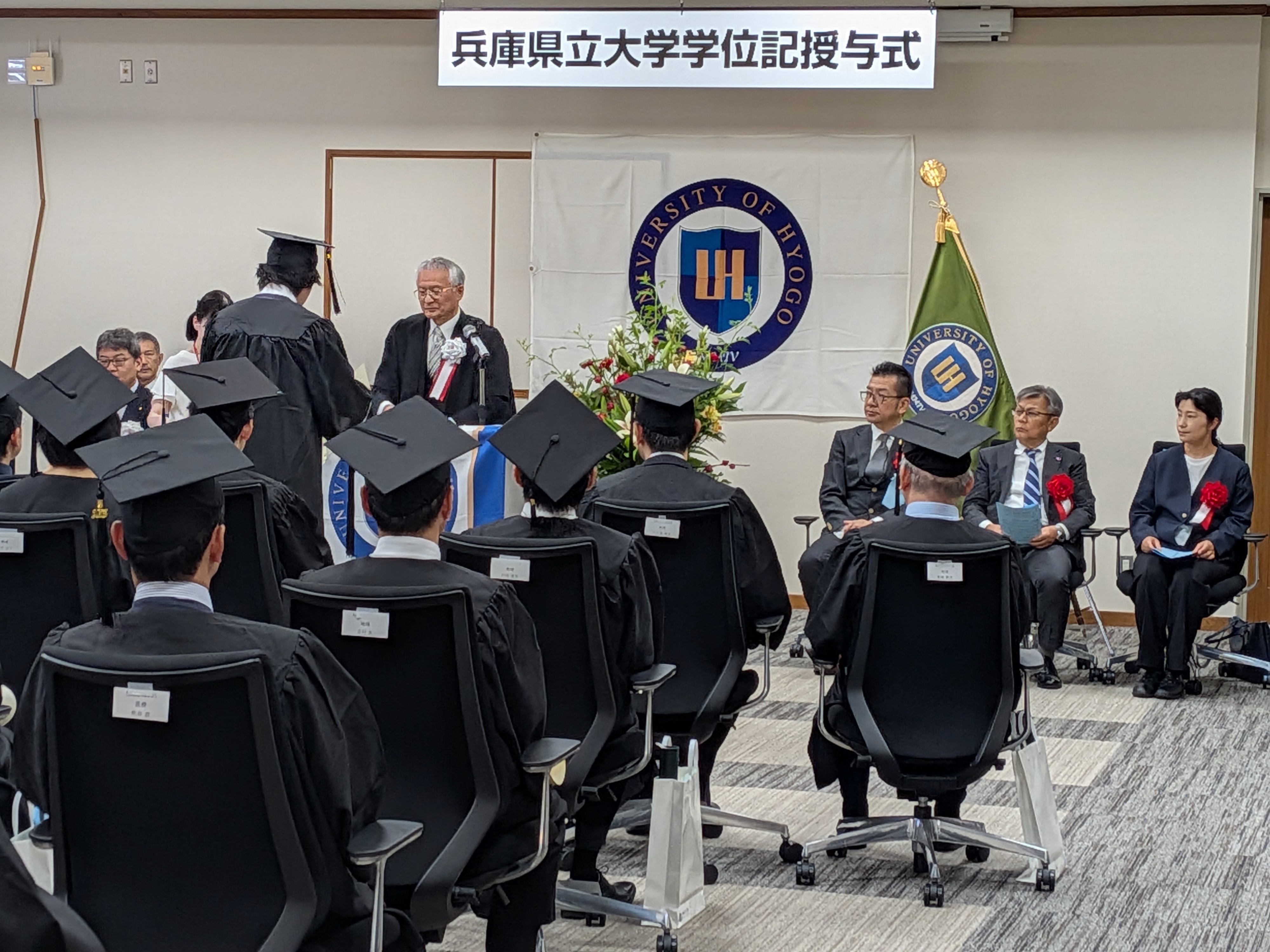 令和7年9月25日 午前10時30分より、兵庫県立大学 全学部・研究科の秋季学位記授与式が神戸商科キャンパスにて挙行されました。20名の方々が修了なさいました。